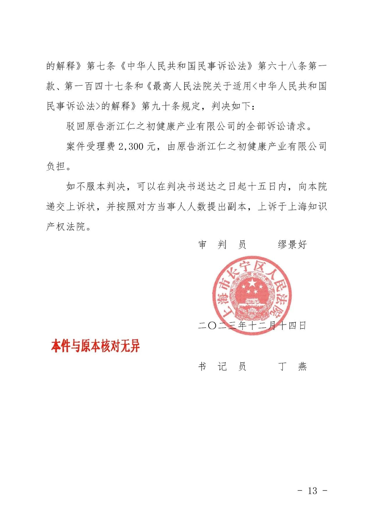 泉州辉知胜诉佳讯 | “仁之初健康”著作权及不正当竞争纠纷案,法院:驳回全部诉讼请求!